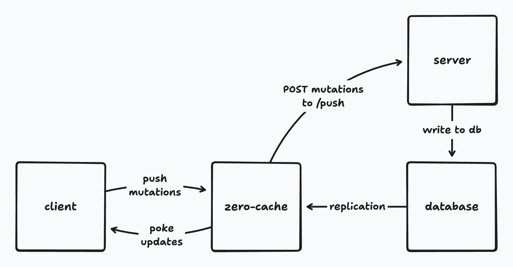 - In the background, Zero then sends a mutation (a record of the mutator having run with certain arguments) to your server's push endpoint.