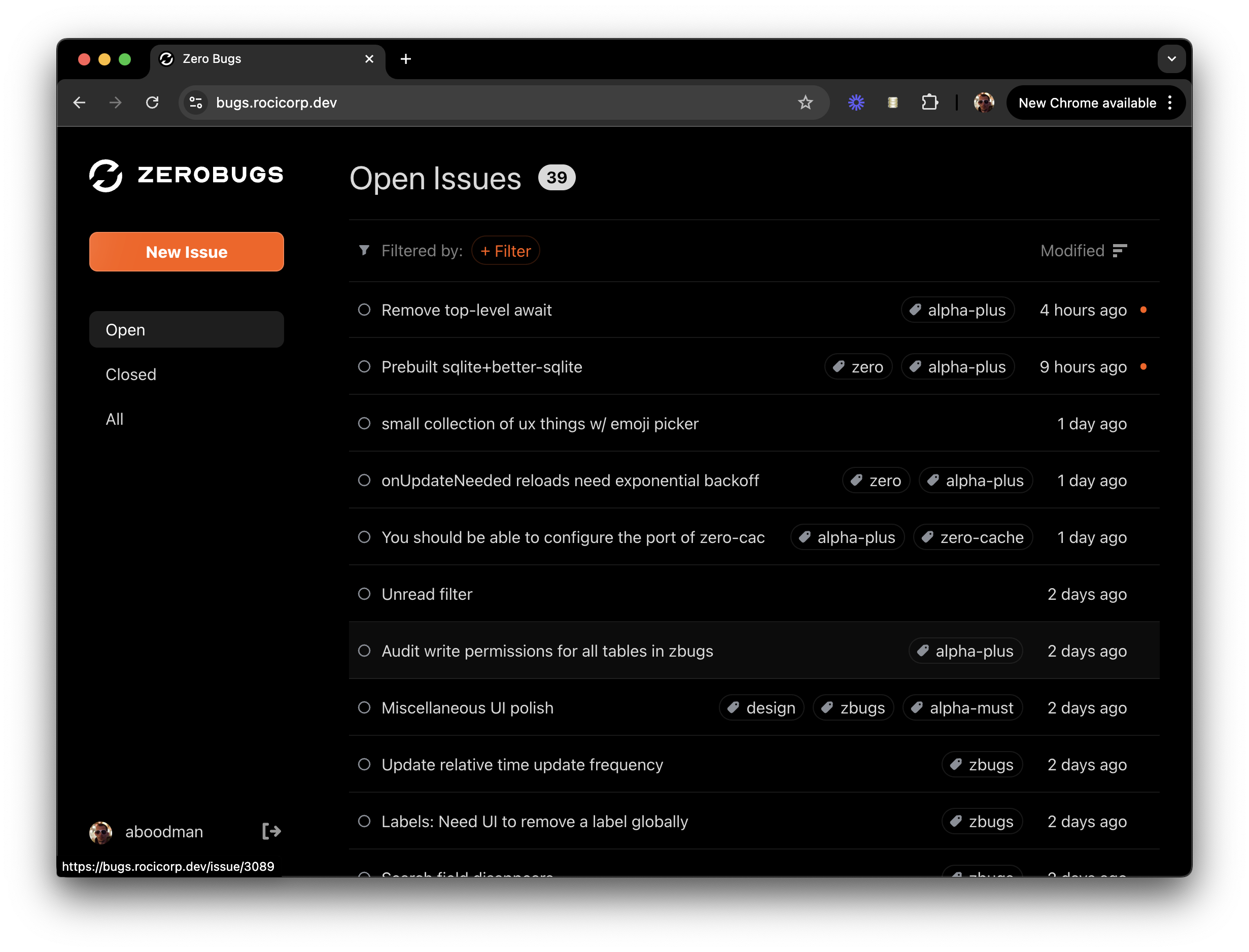 Our own bug tracker built from the ground up on Zero.